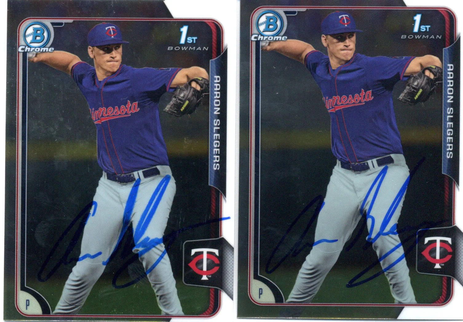 Aaron Slegers Fort Myers Miracle Team 3 Cards 5/9/2015 5/26/2015 2 Cards Signed Blu Sharpie