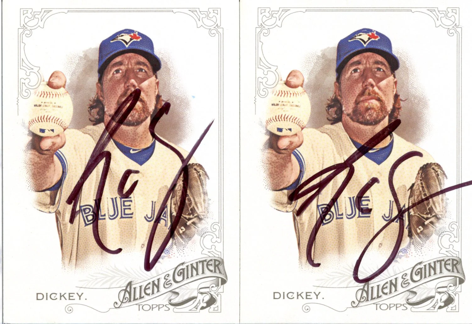 RA Dickey Blue Jays Home 2 Cards 1/14/2016 2/2/2016 2 Signed Blk Sharpie