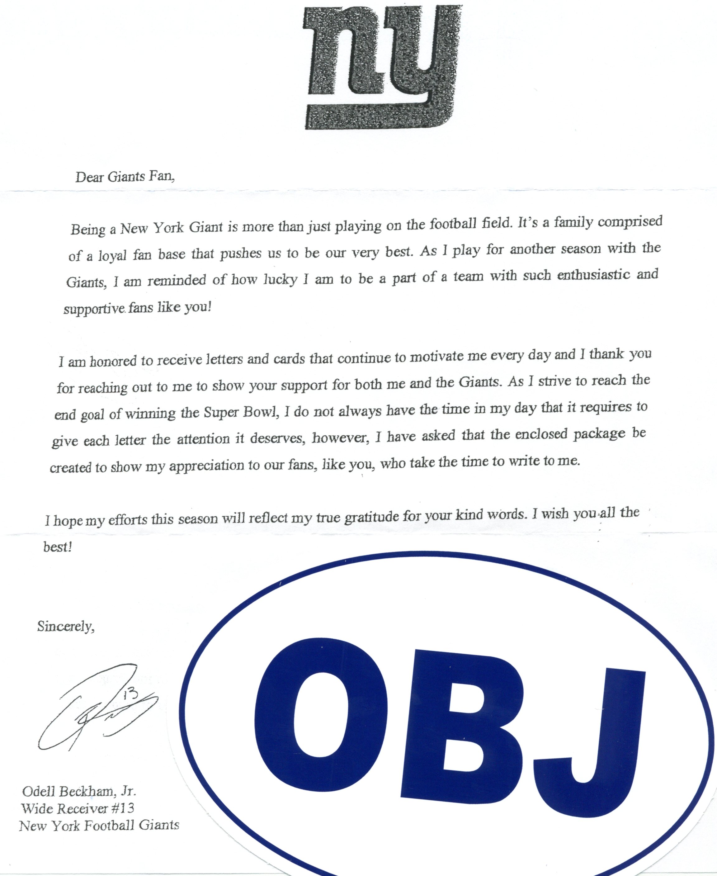 Odell Beckham Jr. New York Giants Training Camp 1 Card 8/7/2015 6/6/2016 Failure - Sticker Ltr