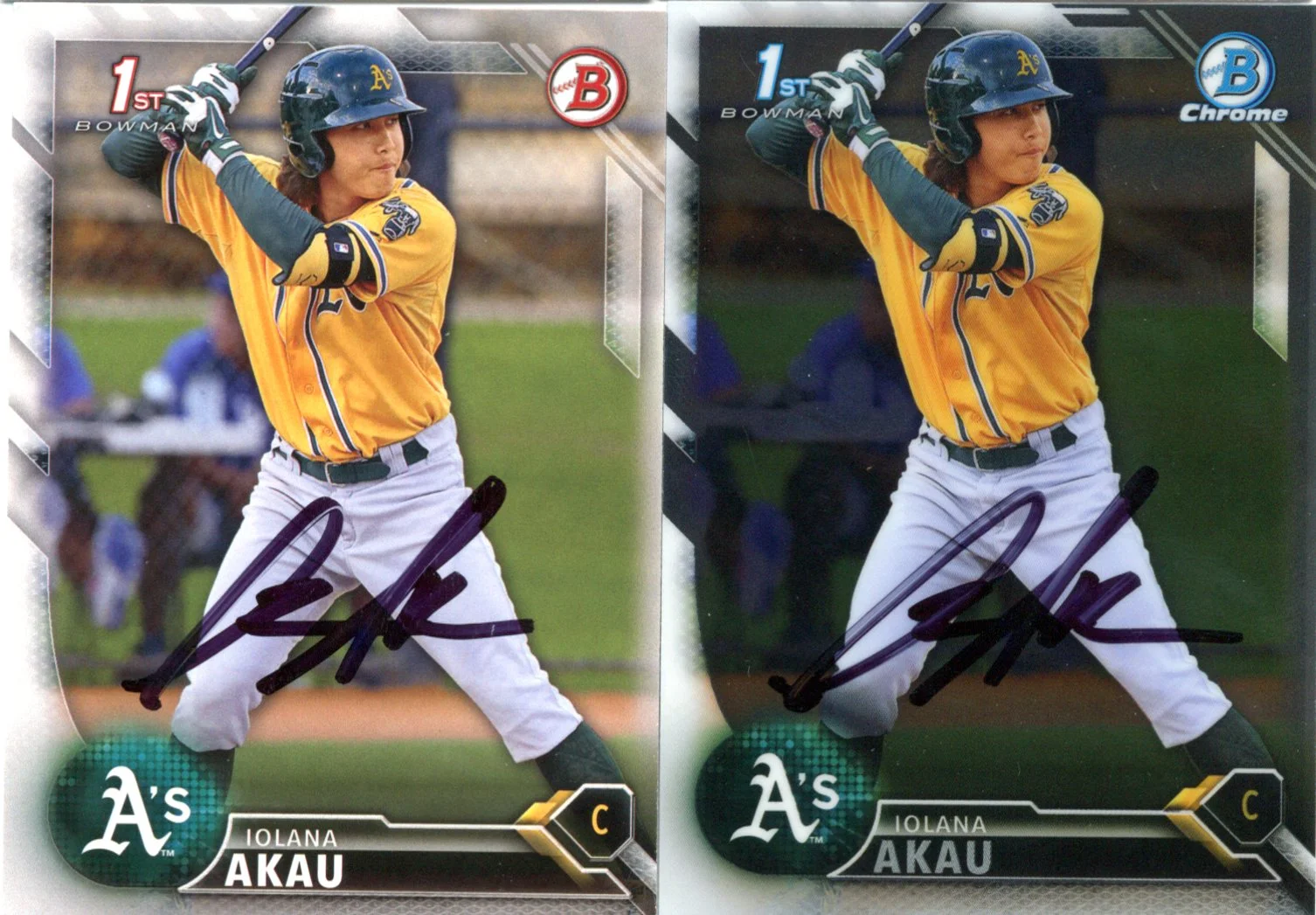Iolana Akau Stockton Ports Team 2 Cards 5/5/2016 6/6/2016 2 Signed Blk Sharpie